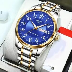 Dianpai Men’s Luxury Automatic Mechanical Watch – Luminous Blue Dial, Roman Numerals, Date Display, Stainless Steel Band