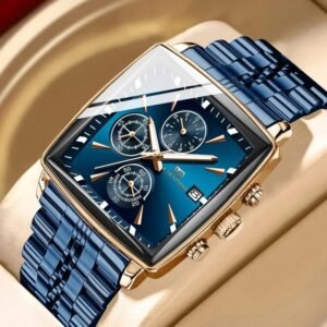Dianpai Men’s Luxury Automatic Mechanical Watch – Luminous Blue Dial, Roman Numerals, Date Display, Stainless Steel Band