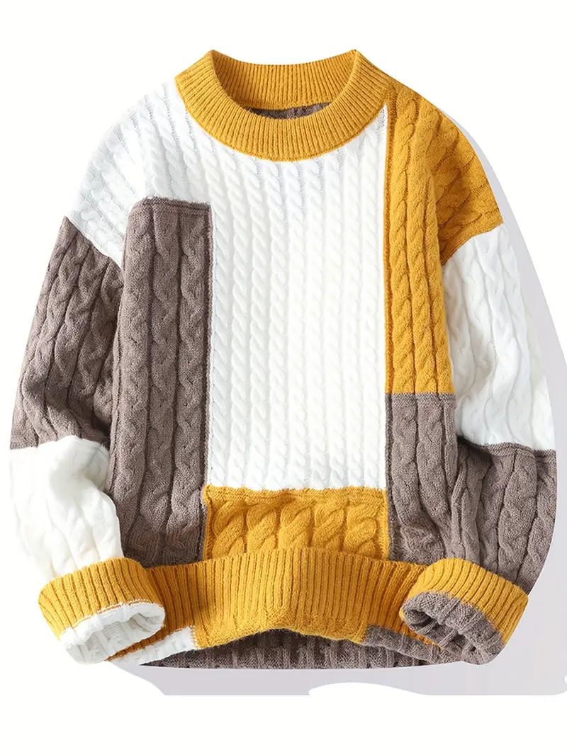 Men’s Color-Block Knit Sweater – Soft and Warm for Autumn/Winter