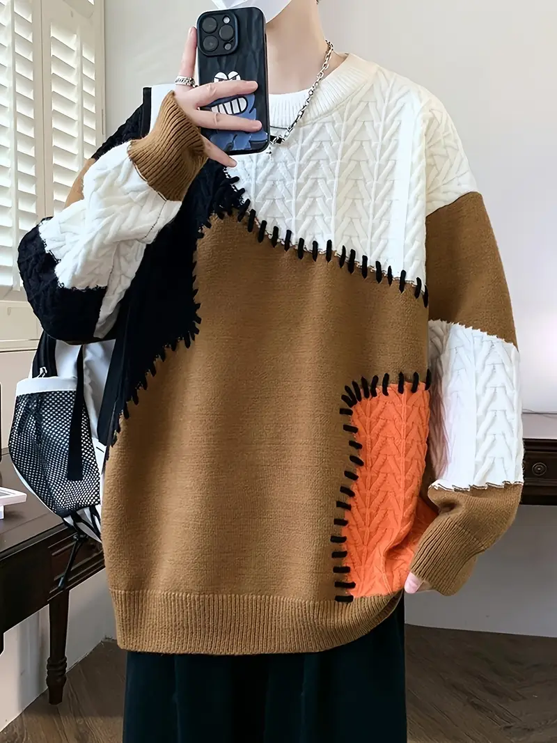 Men’s Color-Block Knit Sweater – Soft and Warm for Autumn/Winter