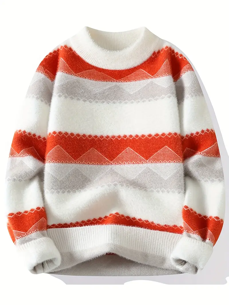 Men’s Color-Block Knit Sweater – Soft and Warm for Autumn/Winter
