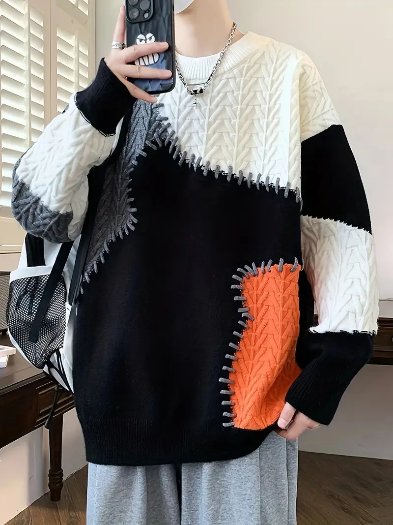 Men’s Color-Block Knit Sweater – Soft and Warm for Autumn/Winter