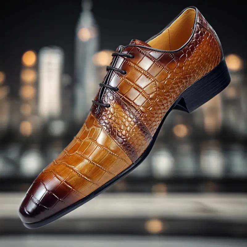 Men’s Trendy Classic Wing-Tip Derby Shoes, Comfy Non Slip Rubber Sole Dress Shoes For Men’s