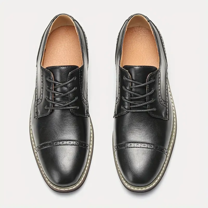 Men’s Trendy Classic Wing-Tip Derby Shoes, Comfy Non Slip Rubber Sole Dress Shoes For Men’s